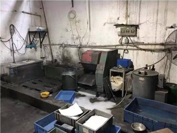 在另一家名為“百?!钡匿擄椛a企業,記者與執法人員到達現場檢查時,發現該廠旁邊一條小巷正流出大量白沫狀廢水,經察看,這些廢水是通過一條破裂的管道從三樓傾泄而下,直接流過地面進入下水道的。執法人員進入該公司生產車間檢查發現,之前看到的大量廢水,正是其超聲波清洗生產工序所產生的,并且未經任何處理,直接排放到樓下。執法人員經過現場取證,依法對該企業進行了查封。